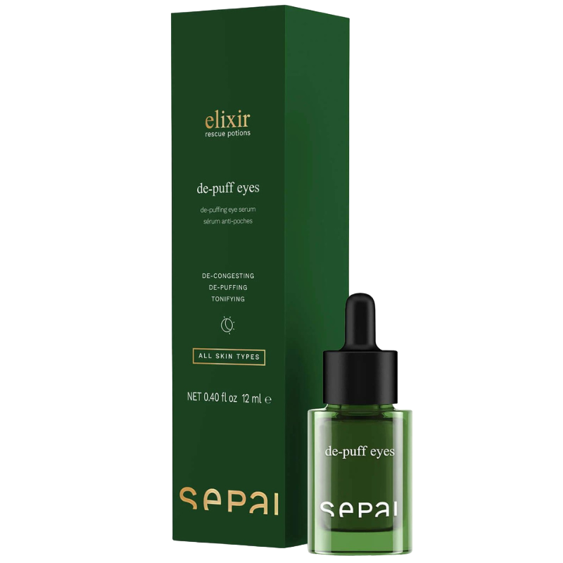 El suero para los ojos sin aceite DE-PUFF EYES de SEPAI estimula el drenaje de la linfa, responsable de la hinchazón ocular. Así se reducen las inflamaciones y se previene su reaparición. Mejora la circulación en la delicada zona de los ojos, haciendo que esta luzca más firme, suave y fresca en general. El suero DE-PUFF EYES combate las bolsas bajo los ojos, tonifica y aclara, reafirma y regenera. Mezclar con el Acitc-C incluido. Apto para todo tipo de piel. Vegano. Sin parabenos, isotiazolinonas, imidazolidinil-urea, conservantes alergénicos, BHT, BHA, emulsionantes y tensioactivos agresivos, ingredientes a base de petróleo (parafinas, petrolato, PEG), silicona, alérgenos, disolventes, aditivos, sustancias potencialmente irritantes para la piel y otros.
