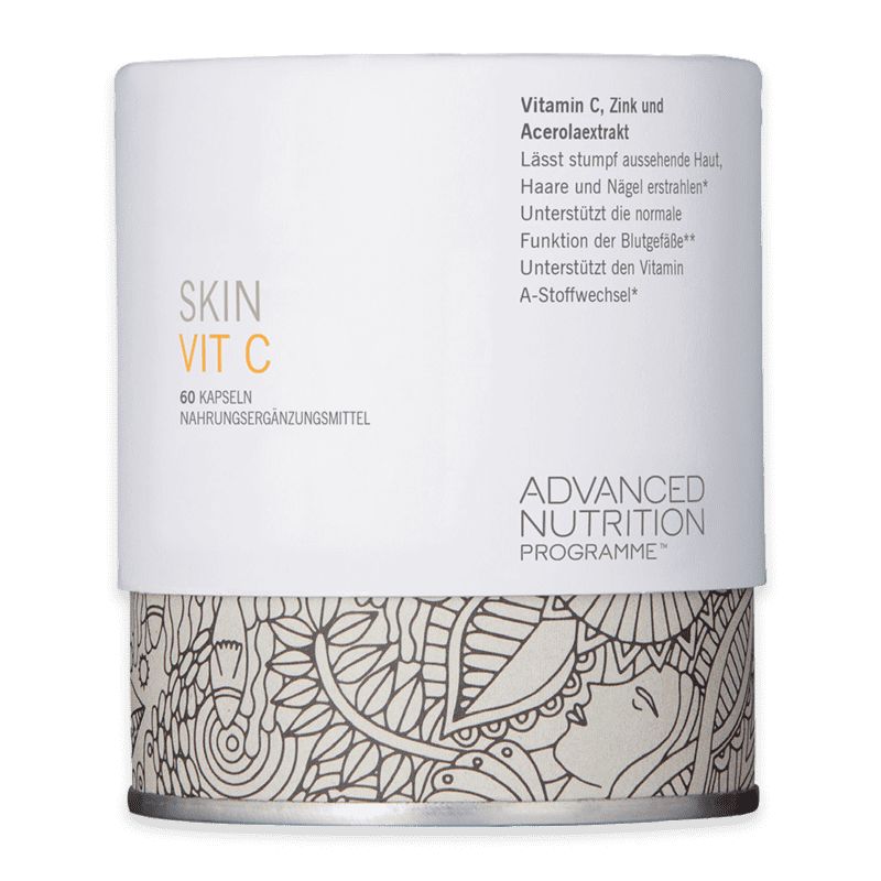 TRIPLE ACCIÓN DE INGREDIENTES DE ALTA CALIDAD: SKIN VIT C - apoya la calidad de la piel. Skin Vit C contiene una combinación de vitamina C, zinc y acerola. Esta combinación de nutrientes hace que la piel opaca vuelva a brillar, apoya la función regular de los vasos sanguíneos, protege las células del estrés oxidativo y apoya la formación de colágeno.
