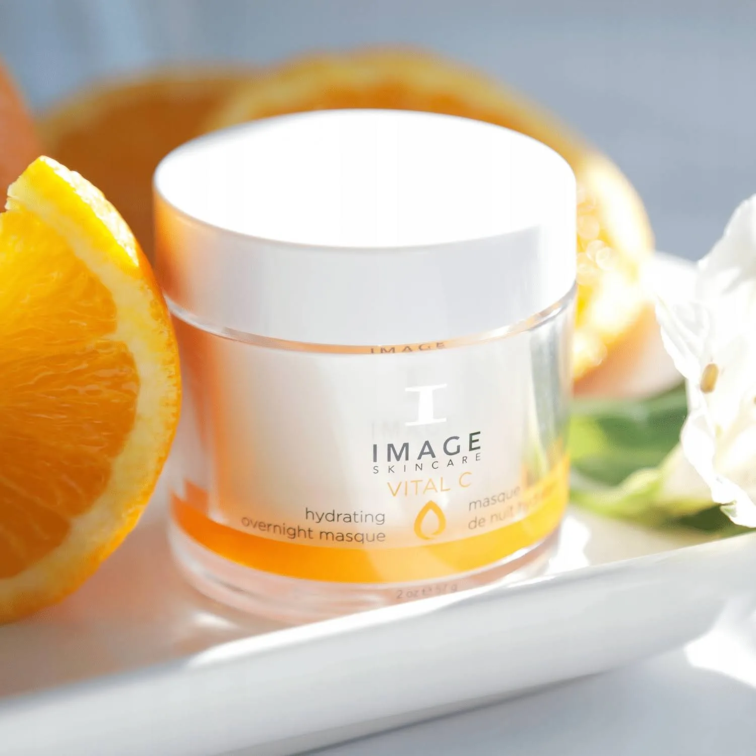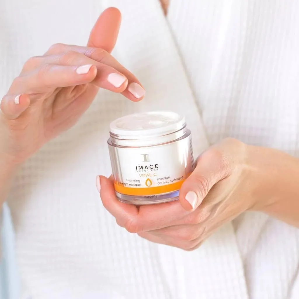 CONSEJO PROFESIONAL: Para una hidratación adicional, añada el suero antioxidante hidratante Vital C ACE a la mascarilla de noche Vital C.
