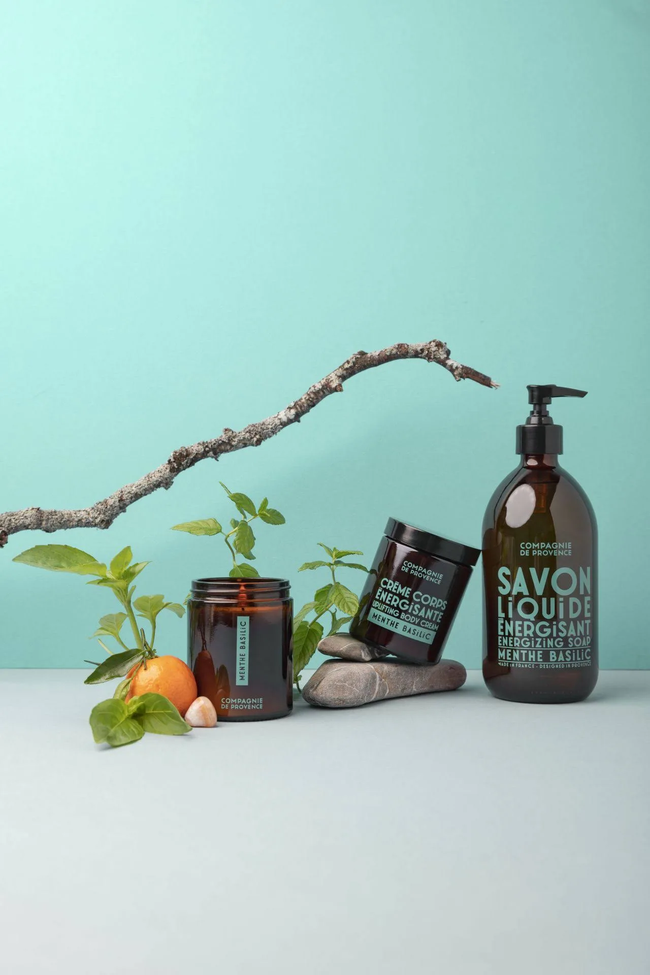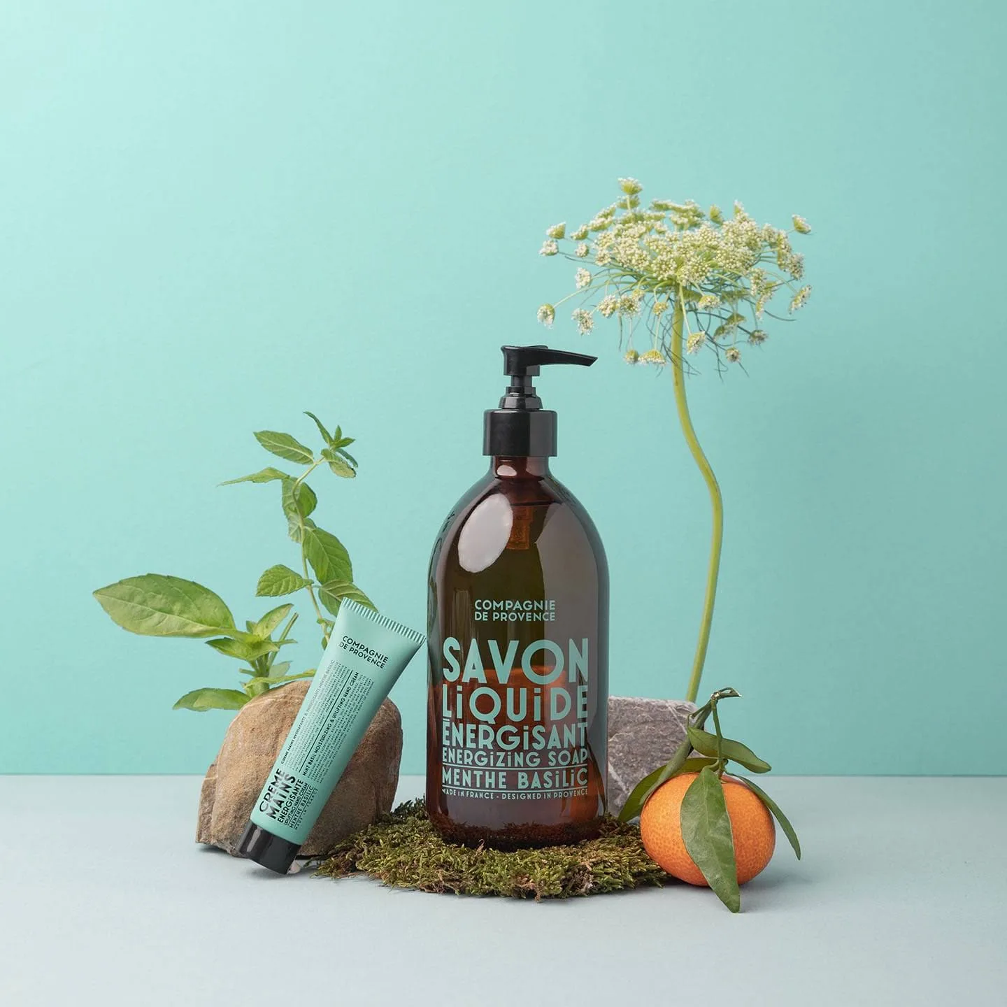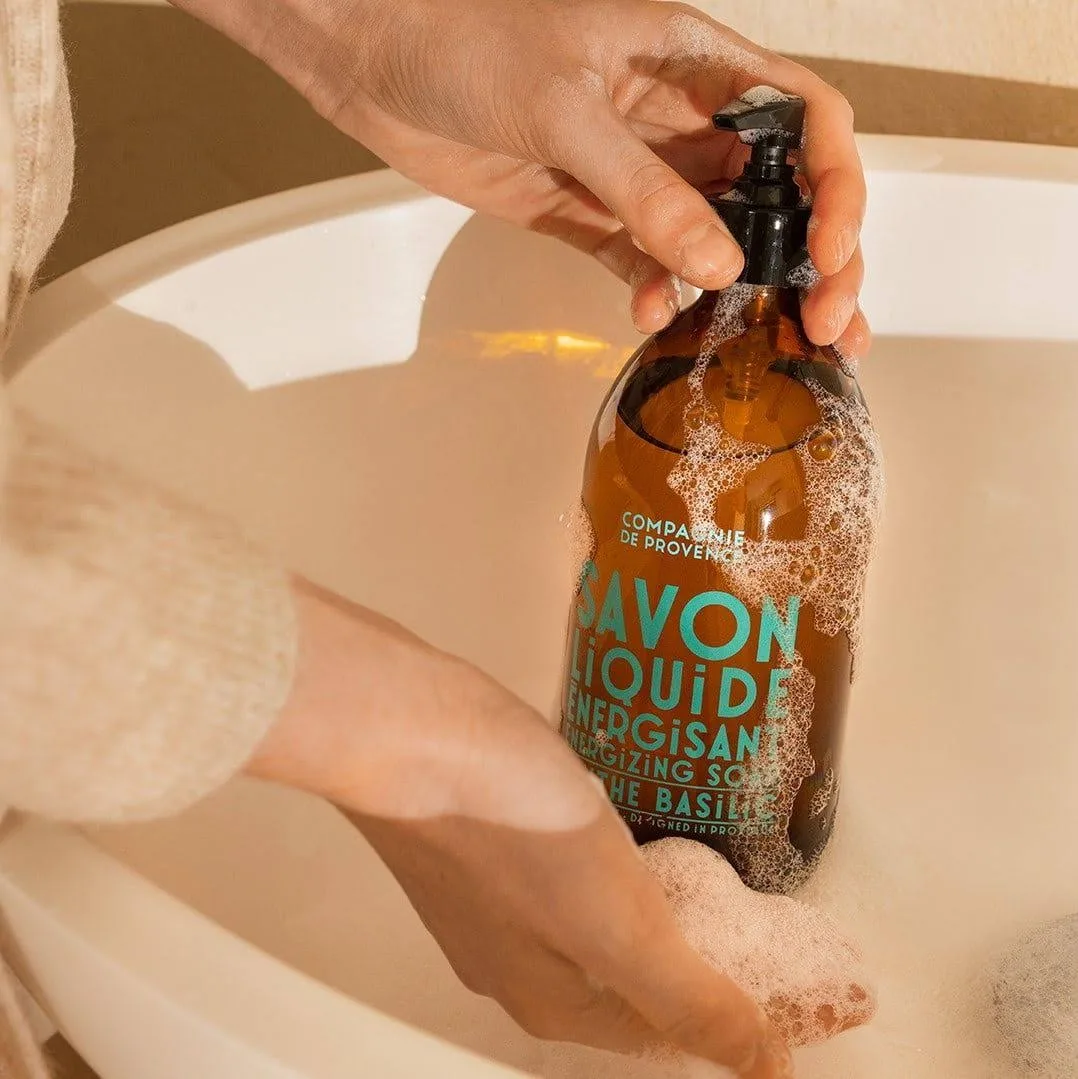 Este jabón líquido con una base limpiadora de aceite de coco y aceite de girasol, que se saponifica en un caldero siguiendo un procedimiento tradicional, tiene una lujosa textura en gel que limpia suavemente las manos y el cuerpo. Enriquecido con excepcionales aceites vegetales de la Provenza, contiene una mezcla de aceites esenciales de menta y albahaca con propiedades estimulantes que tienen un efecto revitalizante en la mente. Sin colorantes ni grasas animales. Aroma revitalizante, creado en Grasse. Consejo para el bienestar ¿SABÍA USTED? Nuestro jabón líquido de Marsella se puede usar tanto para las manos como para el cuerpo. Entonces, ¿por qué no comenzar el día de una manera revitalizante y usar nuestro jabón de menta y albahaca para la ducha matutina?