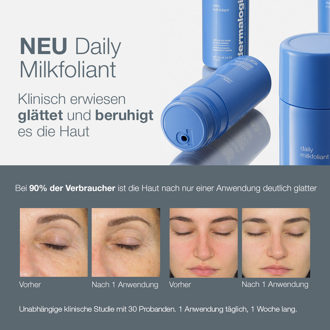Exfoliar y calmar ahora es posible en un solo paso. El Daily Milkfoliant es un exfoliante en polvo calmante, vegano y a base de avena con AHA y BHA.