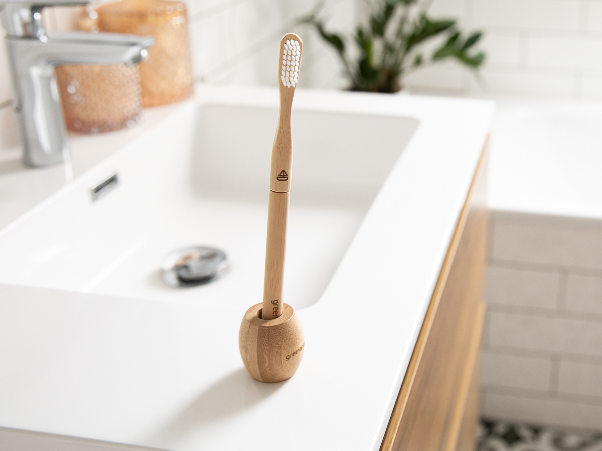 Cepillos de dientes de bambú sostenibles con cabezal intercambiable y soporte: